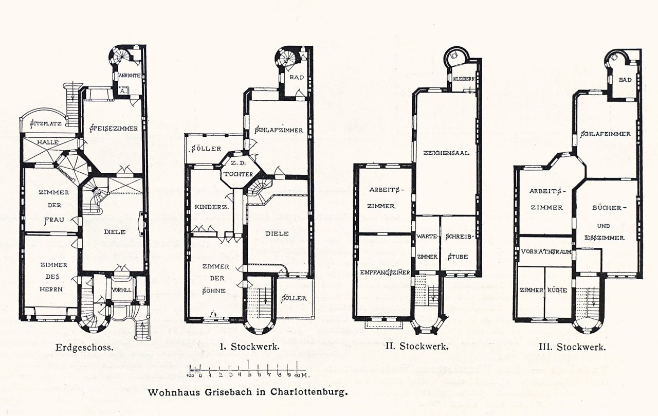 Nach der Reichsgründung 1871 setzte Bismarck seine Idee durch, aus dem Reitweg eine Prachtstraße im Stil der Pariser Champs Elysées erbauen zu lassen. Die Fasanenstraße entwickelte sich durch ihre hervorragende Lage deshalb zu einer ersten Adresse als Wohnsitz adeliger und großbürgerlicher Familien. 1891-92 errichtete hier der Architekt Hans Grisebach (1848 -1904) ein stattliches Haus für seine Familie und sein Atelier. Es war eines der ersten großstädtischen Einfamilien-Reihenhäuser in Berlin. Grisebach, erfolgreicher Architekt, hat in Berlin und dem ganzen deutschen Reich Geschäfts- und Privathäuser entworfen – darunter den Wohnsitz des preußischen „Museumsgenerals“ Wilhelm von Bode in der Uhlandstraße, wie auch den des Dichters Gerhart Hauptmann.