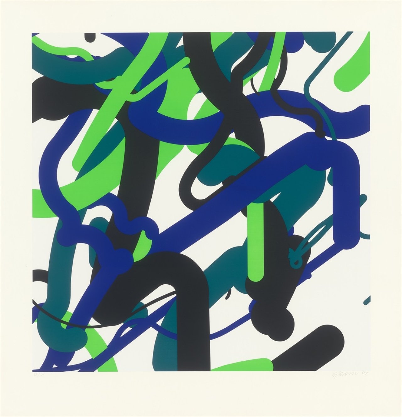 Ohne Titel. 1992. Farbserigrafie auf beschichtetem Papier. 70 × 70 cm. EUR 3.000–4.000. Verkauft für 4.572 EUR (inkl. Aufgeld)