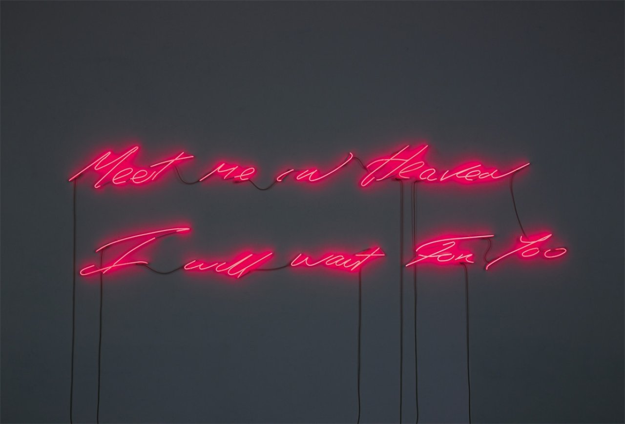 „Meet me in Heaven I will wait For You“. 2004/2011. Neon (fluoreszierendes Pink-Rosa). 110 × 359 cm. Verkauft für 203.200 EUR (inkl. Aufgeld)